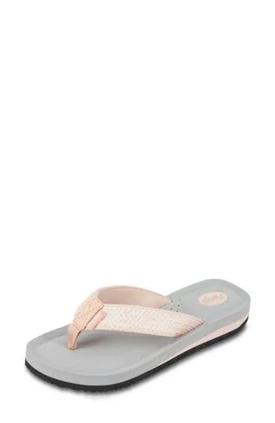 Sparkly textured straps with soft jersey lining top a comfortable flip-flop cushioned by a molded footbed and grounded by a nonslip EVA sole. Textile upper and lining/synthetic sole Imported