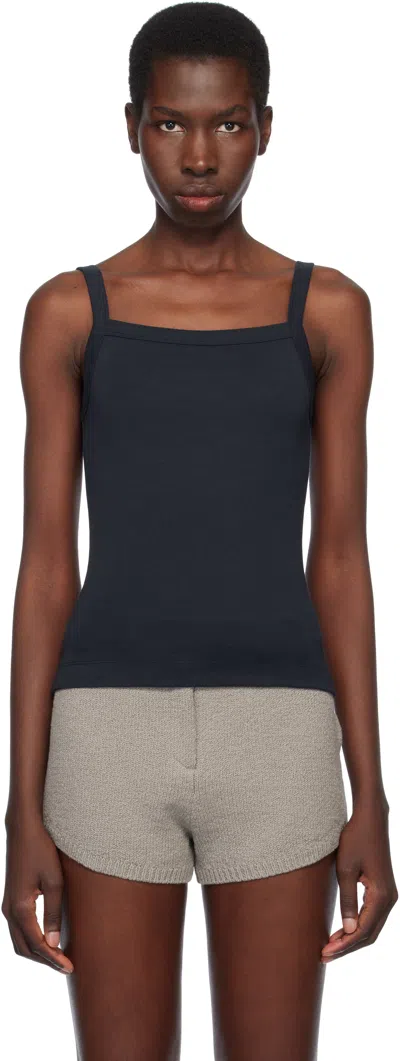 Organic cotton jersey camisole. Rib-knit square neck and shoulder straps. Supplier color: Navy