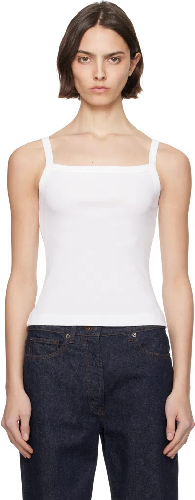 Organic cotton jersey camisole. Rib-knit square neck and shoulder straps. Supplier color: White