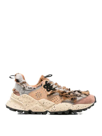 FLOWER MOUNTAIN Chunky Sneakers With Leopard Fur And Suede Detailing In Multi