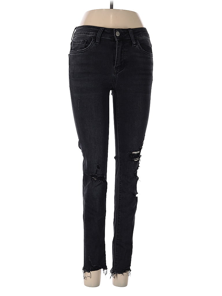 Flying Monkey Jeans, Size: 25. Item Details: Black, Hearts Pattern, Distressed Wash, Skinny Leg, Cropped, Mid/Reg Rise, Women's Bottoms, Spandex/Polyester/Rayon