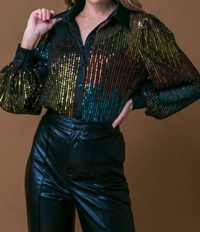 FLYING TOMATO Cause A Commotion Sequin Blouse In Black Multi