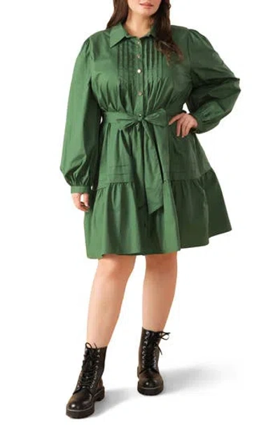 Feel your finest in a long-sleeve shirtdress featuring delicate details like metallic buttons, polished pin-tucks and a soft-tied waistbelt to cinch the silhouette. 39" length (size 1X) Button front closure Long sleeves Removable waist belt 100% cotton Hand wash, dry flat Imported
