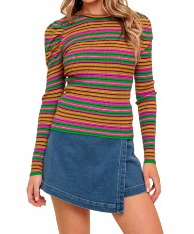 Experience the perfect blend of comfort and style with this trendy crew neck sweater, designed to effortlessly elevate your wardrobe. Pair it with your favorite denim and loafers for the perfect look.Presenting the Striped Sweater Blouse by FLYING TOMATO, a chic blend of style and comfort in a captivating pink-green hue. This blouse features long puff sleeves and a crewneck design, offering a modern twist on a timeless classic. Crafted from a viscose blend (49% viscose, 28% polyester, 23% nylon), it drapes luxuriously while ensuring durability. Length - 22.5" for size small. Closure - Pull on. Care - Machine wash. Ideal for adding a maximalist touch to your spring wardrobe, perfect for occasions like a dinner party. Model is 5'8" wearing a size small.