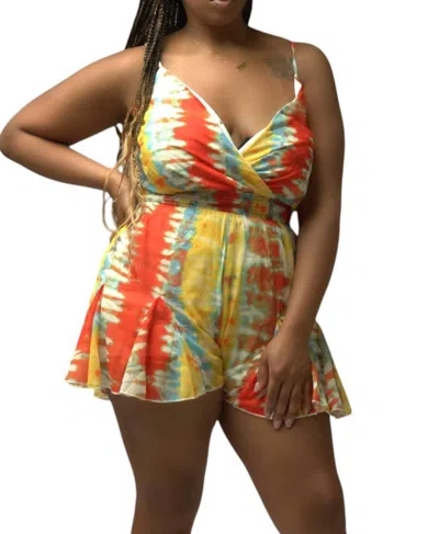 Tie Dye Sleeveless Romper In Orange Multi
