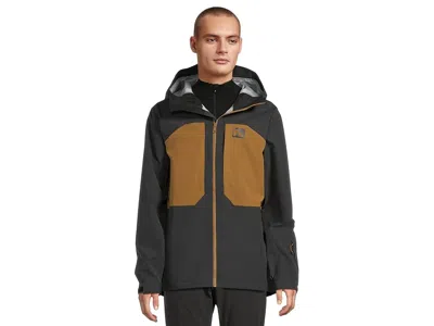 Flylow Knight Jacket - Men's Clothing : Black/Rye : The Flylow Knight Jacket is a mountain utility coat built for everything from bootpacking to tram riding to gelande quaffing, this jacket has a heavy-duty, three-layer fabric that blocks wind and cold and a Durable Water Repellent coating to keep sleet and snow from sending you inside. Generous 14-inch armpit zippers keep you cool up the uptrack or during a spring-skiing session at the resort. ; The fully seam taped design features three exterior pockets, an inner media pocket, an interior pass pocket, an elasticized powder skirt, powder guard snaps, no Bulk cuffs, and YKK zippers. ; 100% polyester. ; Hand wash cold, line dry. ; Imported. Measurements: ; Length: 32 in ; Chest Measurement: 46 in ; Sleeve Length: 33 in ; Product measurements were taken using size MD. Please note that measurements may vary by size. | Flylow Knight Jacket Men's Clothing Black/Rye : MD, Polyester