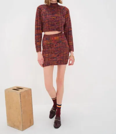 The perfect mini skirt does exist.Introducing the Ruby Mini Skirt by For Love & Lemons, a boho chic piece perfect for your spring wardrobe. This mini skirt features a multi-color cable knit pattern and a ribbed waistband in a pull-on silhouette, crafted from 70% acrylic and 30% nylon. Designed for women in a rich brown hue, it embodies textured charm with a focus on both style and comfort. Care instructions - Hand wash and lay flat to dry.