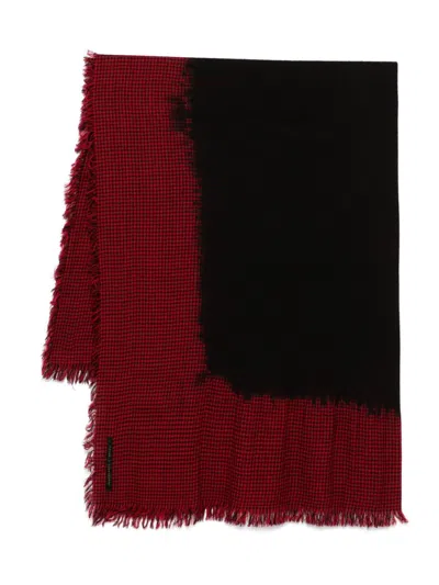 black/red virgin wool interwoven design check pattern frayed edge rectangle shape wraparound style