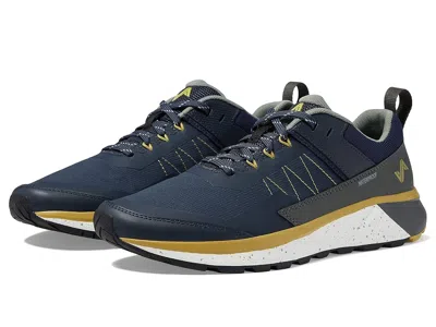 Forsake Cascade Peak Low WP - Men's Shoes : Navy : Climate Neutral certified brand dedicated to sustainability by measuring, offsetting, and reducing their carbon emissions. ; The primary materials that compose this product contain a minimum of 20 percent recycled content. ; Have that trendy and classic appearance wearing Forsake Cascade Peak Low WP sneakers. ; Leather and ripstop nylon upper. ; Recycled wicking mesh linings. ; BLOOM Rebound footbed. ; Lace-up closure and webbing. ; Waterproof and breathable membranes keep moisture out. ; Gusseted tongues. ; Taped seams prevent moisture leaks. ; Brand detailing on the tongue and on the footbed. ; Round toe design. ; Internal ethylene-vinyl acetate midsoles are optimized for shock absorption. ; MultiGrip synthetic outsoles are tailored for the trail. ; Imported. Measurements: ; Weight: 12 oz ; Product measurements were taken using size 9, width D - Medium. Please note that measurements may vary by size. | Forsake Cascade Peak Low WP Men's Shoes Navy : 13 D - Medium, Textile/Leather