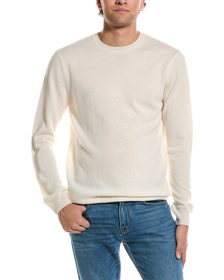 Introducing the Forte Classic Crew Cashmere Sweater, a luxurious addition to any man's wardrobe. This timeless pullover sweater is crafted from 100% cashmere and features ribbed trim for added texture. The ivory color gives it a versatile look that can be dressed up or down. With a length of approximately 28 inches from shoulder to hem, this sweater is perfect for layering or wearing on its own. The model is 5'10 and is wearing a size medium, but measurements may vary slightly by size. Dry clean only, imported. Elevate your style with the Forte Classic Crew Cashmere Sweater.