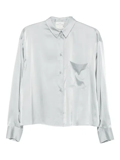 FORTE FORTE Long Sleeve Satin Top Featuring Pocket In Silver