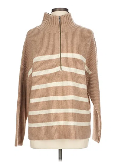 Forte Pullover Sweater, Size: Large. Item Details: Tan, Stripes Pattern, High Neck, Long Sleeve, Zippers, Women's Tops