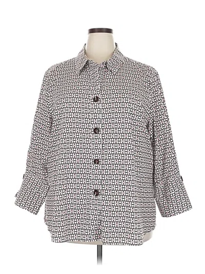 Foxcroft 3/4 Sleeve Button Down Shirt, Size: 22. Item Details: Gray, Graphic Pattern, Square Neckline, 3/4 Sleeves, Chains, Women's Tops, 100% Cotton