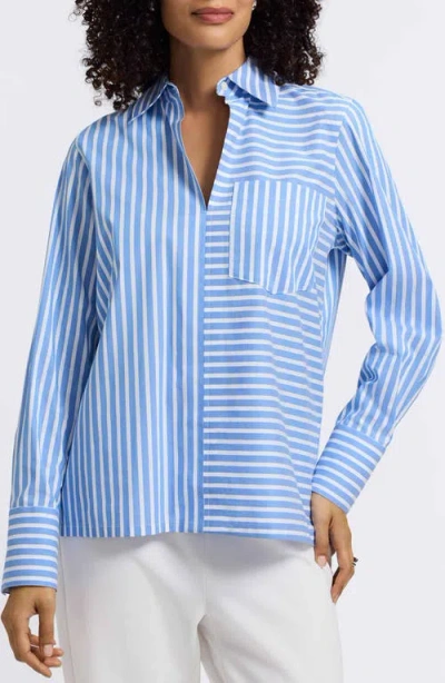 FOXCROFT Bella Stripe Popover Top In Blue