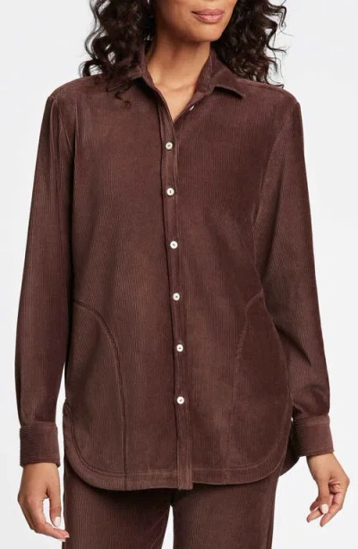 FOXCROFT Maddy Plush Corduroy Button-up Shirt In Chocolate