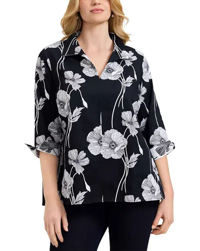 Foxcroft Plus Agnes Popover Top.Color:Black/ White.Size:3X.Material:100% cotton.Tops.