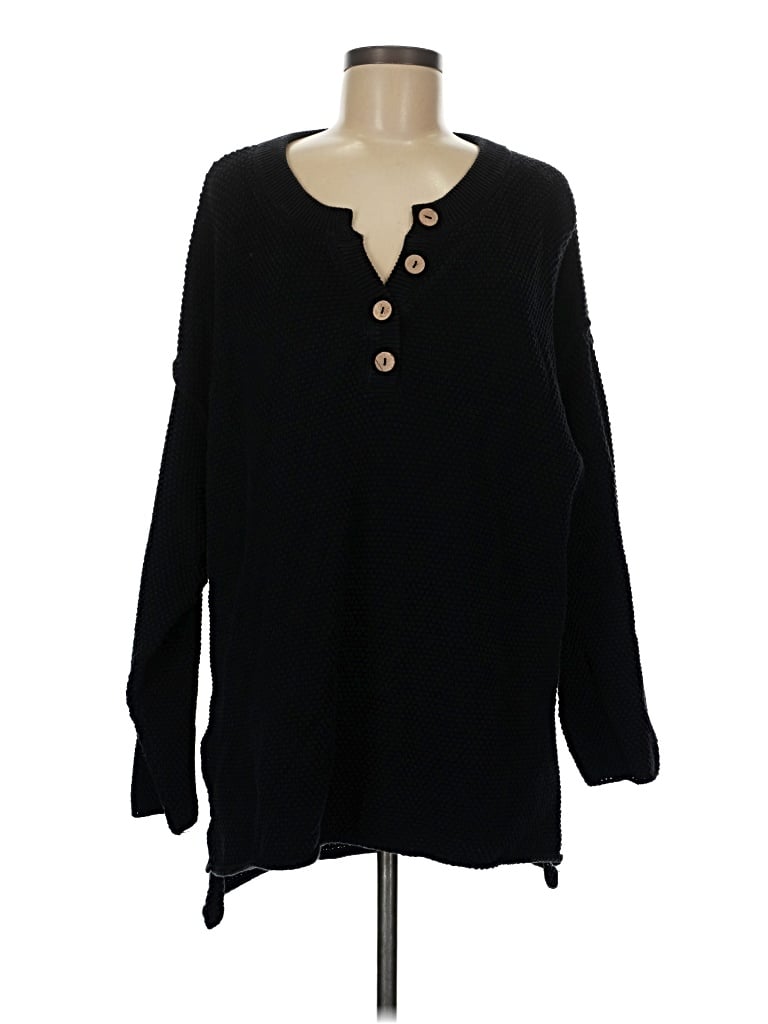 FP BEACH Pullover Sweater, Size: Medium. Item Details: Black, Keyhole Neckline, Long Sleeve, Women's Tops, 100% Cotton