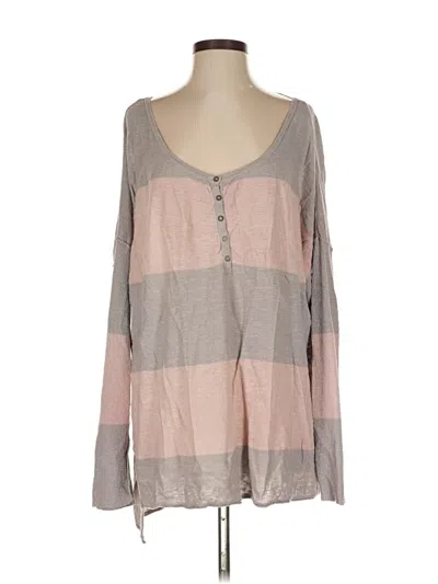 FP BEACH Pullover Sweater, Size: Large. Item Details: Gray, Plunge Neckline, Long Sleeve, Women's Tops, Linen/Cotton/Polyester