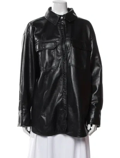 FRAME Biker Jacket Black Embroidered Accent & Pointed Collar Flap Pockets & Snap Closure Fit: Jackets by FRAME typically fit true to size. | FRAME Biker Jacket in Black, Women's L
