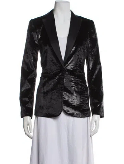 FRAME Blazer Black & Metallic Pointed Collar Button Closure Fit: Jackets by FRAME typically fit true to size. | FRAME Blazer in Black/Metallic, Women's US 0 | XS