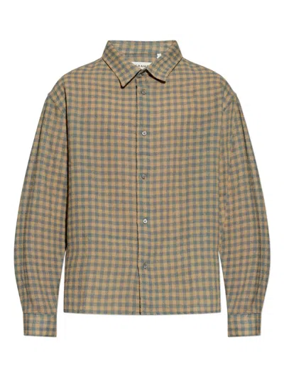 beige/grey checked pattern button fastening long sleeves buttoned cuffs straight hem