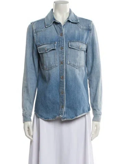 FRAME Denim Jacket Blue Pointed Collar Flap Pockets & Button Closure Fit: Jackets by FRAME typically fit true to size. | FRAME Denim Jacket in Blue, Women's M