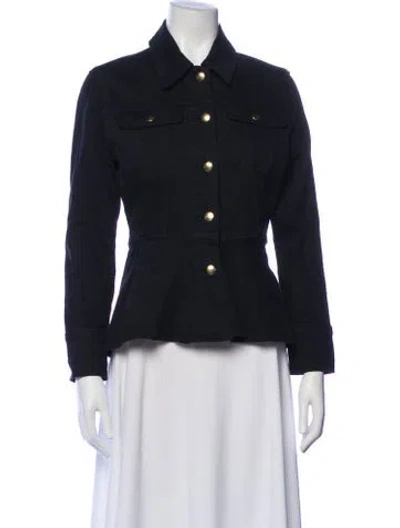 FRAME Denim Jacket Blue Ruffle Embellishment & Pointed Collar Slit Pockets & Button Closure Fit: Jackets by FRAME typically fit true to size. | FRAME Denim Jacket in Blue, Women's S
