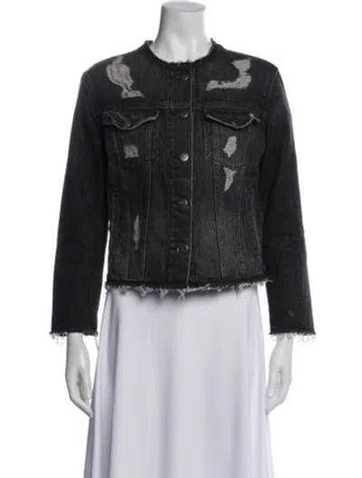 FRAME Denim Jacket Grey Raw-Edge & Distressed Accents Collarless Slit Pockets & Button Closure Fit: Jackets by FRAME typically fit true to size. | FRAME Denim Jacket in Grey, Women's S