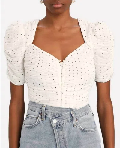 A timeless blouse that will never go out of style.The Gathered Button Front Top by FRAME is an elegant addition to any wardrobe with its chic off-white polka dot pattern, perfect for spring events like an anniversary. This blouse showcases short sleeves and a flattering sweetheart neckline, offering a quintessential look for those special occasions. Made from 100% polyester, the top is imported and crafted with a pull-on closure for easy wear. For best care, dry clean only.