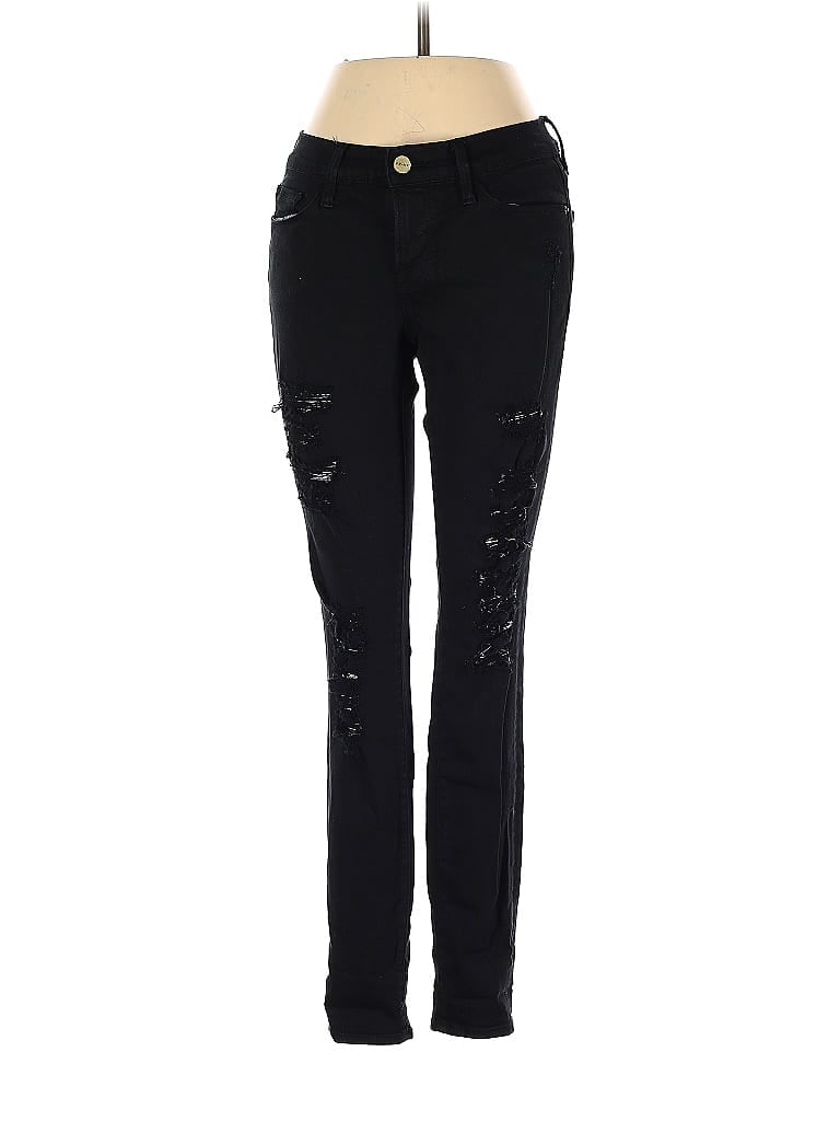FRAME Denim Jeans, Size: 25. Item Details: Black, Hearts Pattern, Distressed Wash, Skinny Leg, Regular, Harem, Mid/Reg Rise, Women's Bottoms, Cotton/Polyester/Lycra