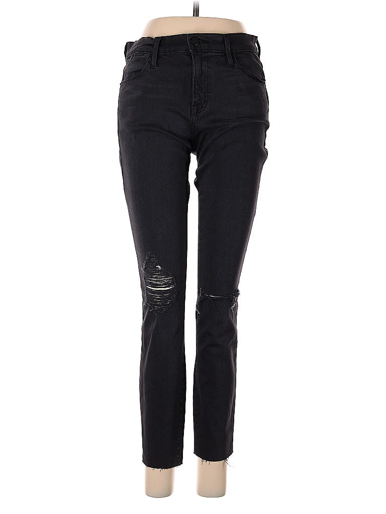 FRAME Denim Jeans, Size: 29. Item Details: Black, Stars Pattern, Coated Wash, Skinny Leg, Cropped, High Rise, Women's Bottoms, Modal/Cotton/Polyester