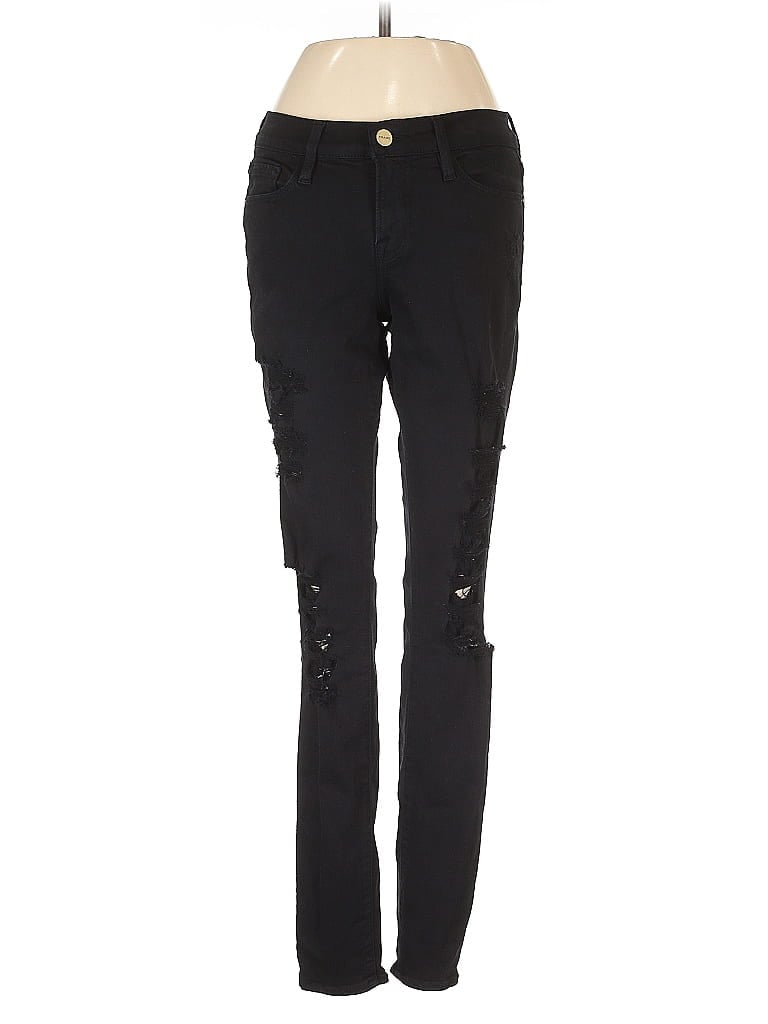 FRAME Denim Jeans, Size: 25. Item Details: Black, Skinny Leg, Cropped, Cargo, High Rise, Women's Bottoms, Lycra/Polyester/Cotton