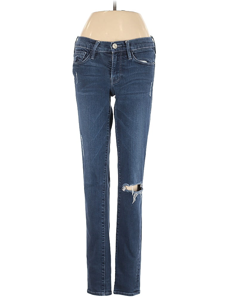 FRAME Denim Jeans, Size: 24. Item Details: Blue, Hearts Pattern, Distressed Wash, Skinny Leg, Cropped, Boyfriend, Mid/Reg Rise, Women's Bottoms, Cotton/Polyester/Lycra