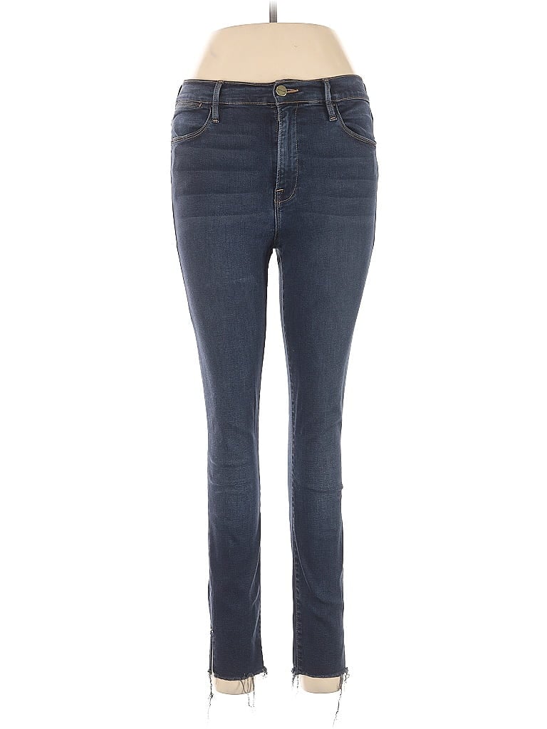 FRAME Denim Jeans, Size: 32. Item Details: Blue, Solid Pattern, Dark Wash, Skinny Leg, Cropped, High Rise, Women's Bottoms, Elastane/Polyester/Cotton