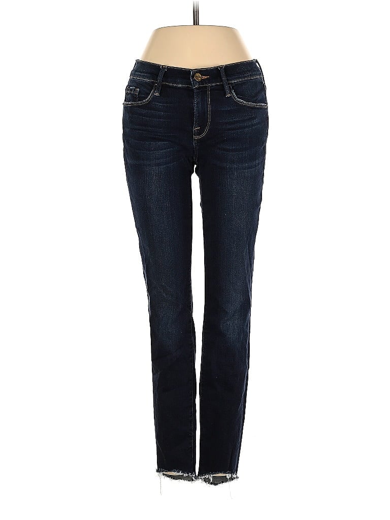 FRAME Denim Jeans, Size: 25. Item Details: Blue, Solid Pattern, Dark Wash, Skinny Leg, Cropped, Harem, Mid/Reg Rise, Women's Bottoms, Cotton/Polyester/Elastane