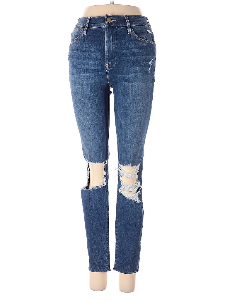 FRAME Jeans, Size: 27. Item Details: Blue, Hearts Pattern, Distressed Wash, Skinny Leg, Cropped, High Rise, Women's Bottoms, Cotton/Polyester/Elastane