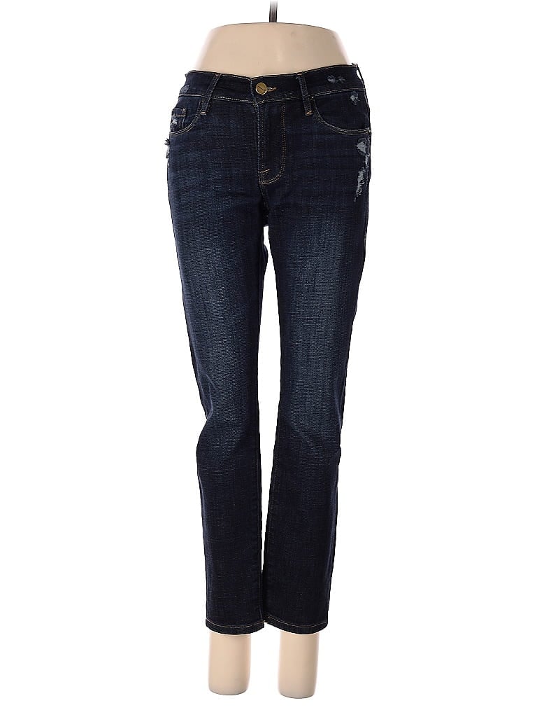 FRAME Jeans, Size: 24. Item Details: Blue, Hearts Pattern, Dark Wash, Straight Leg, Cropped, Boyfriend, Mid/Reg Rise, Women's Bottoms, Cotton/Polyester/Elastane