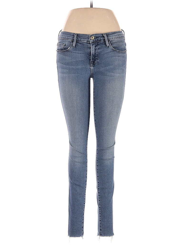 FRAME Denim Jeans, Size: 26. Item Details: Blue, Hearts Pattern, Medium Wash, Skinny Leg, Women's Bottoms, Elastane/Polyester/Tencel