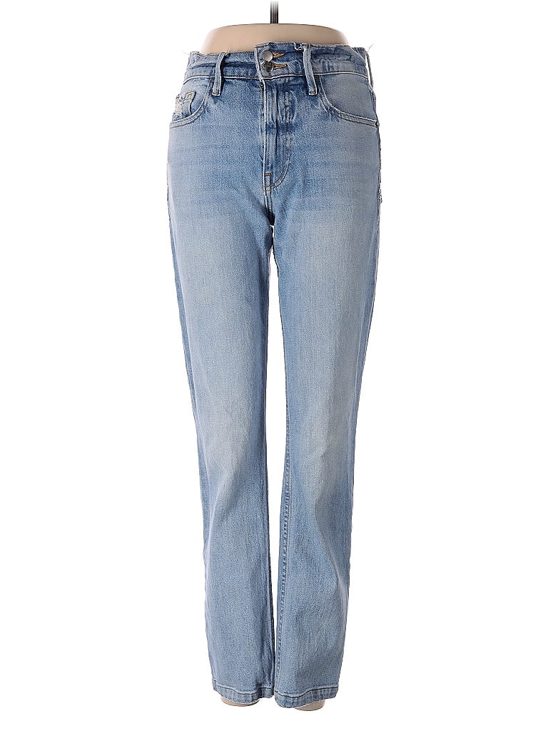 FRAME Denim Jeans, Size: 25. Item Details: Blue, Hearts Pattern, Light Wash, Straight Leg, Cropped, Boyfriend, High Rise, Women's Bottoms