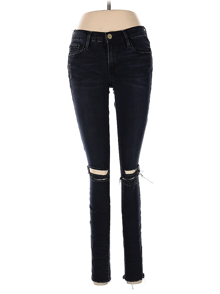 FRAME Denim Jeans, Size: 27. Item Details: Blue, Stripes Pattern, Dark Wash, Skinny Leg, Cropped, Mid/Reg Rise, Women's Bottoms, Cotton/Polyester/Elastane