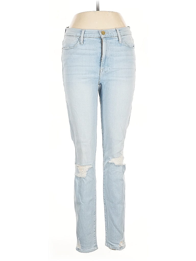 FRAME Denim Jeans, Size: 30. Item Details: Blue, Hearts Pattern, Light Wash, Straight Leg, Regular, Boyfriend, High Rise, Women's Bottoms, Elastane/Polyester/Lyocell