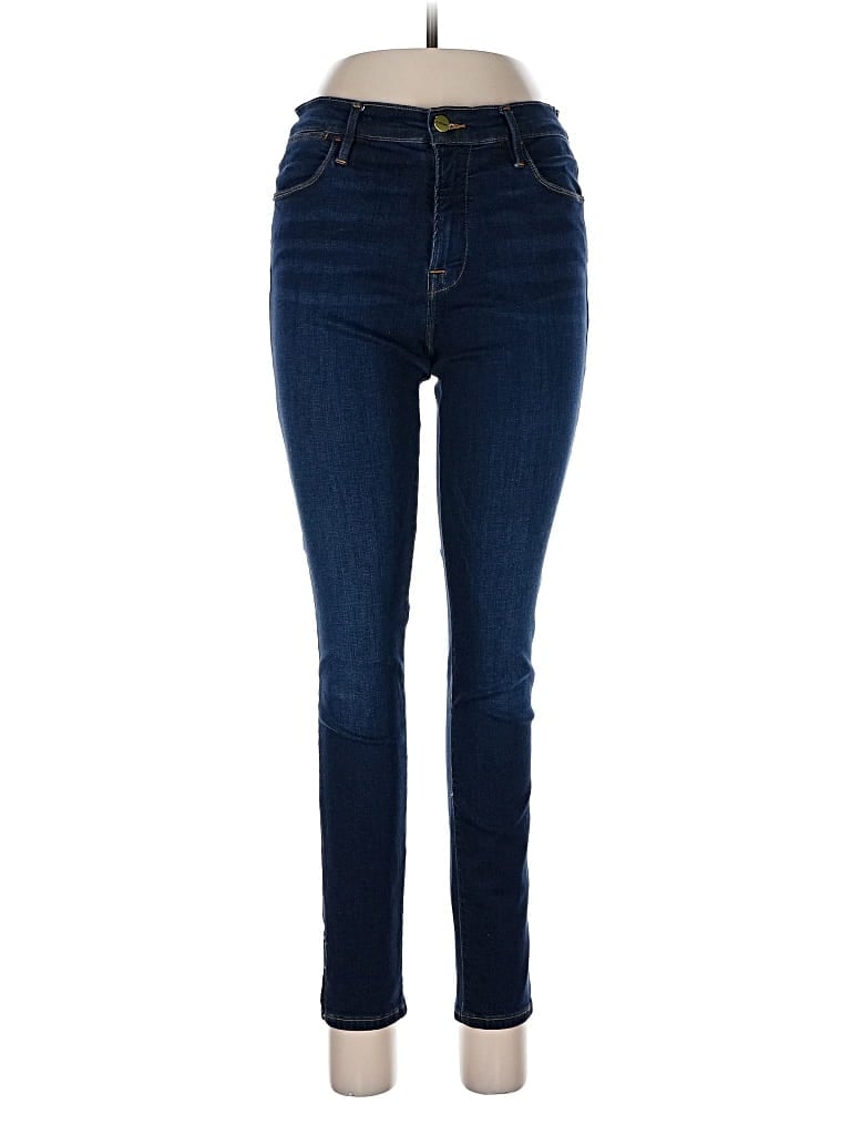 FRAME Denim Jeans, Size: 30. Item Details: Blue, Solid Pattern, Dark Wash, Skinny Leg, Cropped, High Rise, Women's Bottoms, Elastane/Polyester/Cotton
