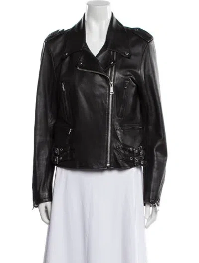 Pre-owned Lamb Leather Biker Jacket In Black