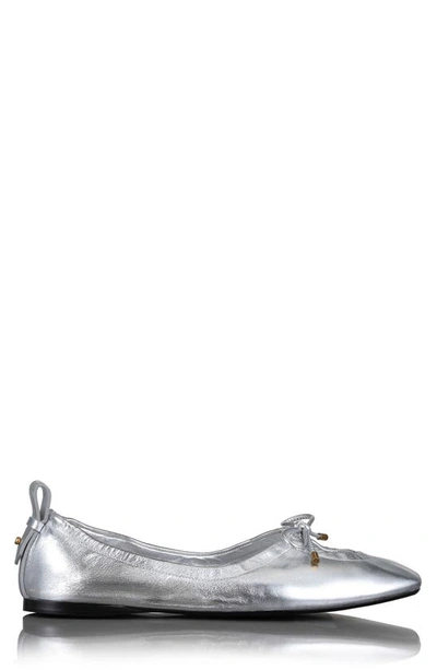 FRAME Le Sunset Square Toe Ballet Flat In Silver