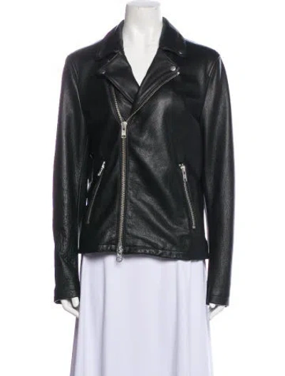 FRAME Leather Biker Jacket Black Pointed Collar Zip Pockets & Zip Closure Fit: Jackets by FRAME typically fit true to size. | FRAME Leather Biker Jacket in Black, Women's S