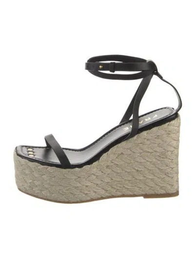 FRAME Leather Espadrilles Black Platform Wrap-Around Straps Unfortunately, due to restrictions, this item may not be eligible for shipping in all areas. | FRAME Leather Espadrilles in Black, Women's 8