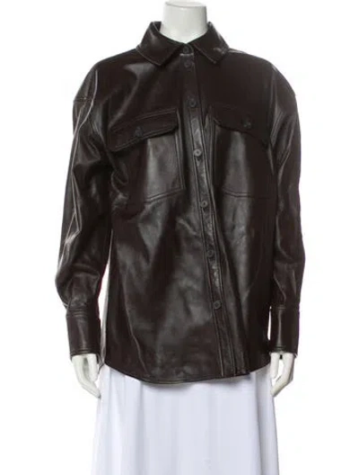 FRAME Leather Jacket Brown Pointed Collar Patch Pockets & Button Closure Fit: Jackets by FRAME typically fit true to size. | FRAME Leather Jacket w/ Tags in Brown, Women's S