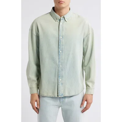Bleached nonstretch denim confers old-favorite status to this button-up shirt created in a relaxed modern fit. 28" length; 48" chest (size Medium) Front button closure Button-down collar Long sleeves with button cuffs 80% cotton, 20% recycled cotton Machine wash, dry flat Made in Turkey