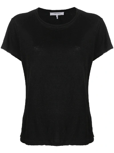 Black Made from organic linen Distressed trim at cuffs and hem Round neck Short sleeves Regular fit Straight hem This item is made from at least 50% organic materials.