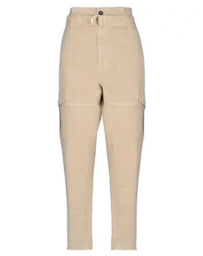 twill, basic solid color, belt, low waisted, regular fit, straight leg, button, zip, multipockets, stretch , Color: Beige , Size: 30